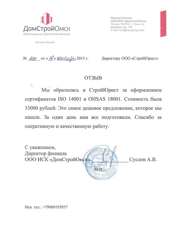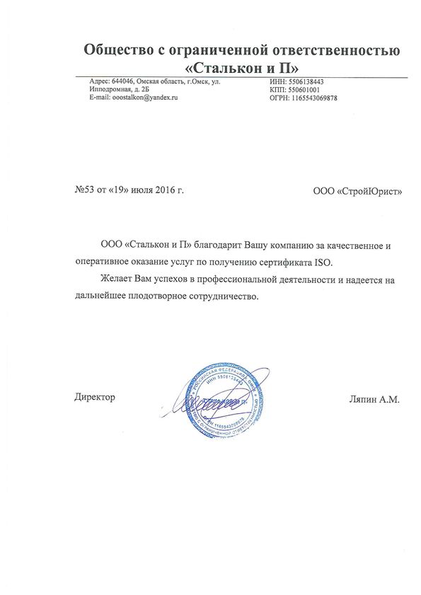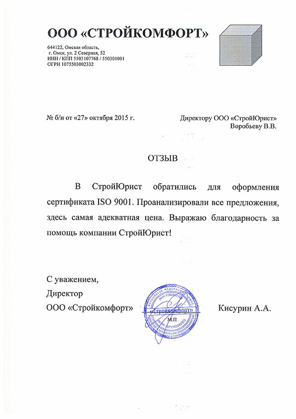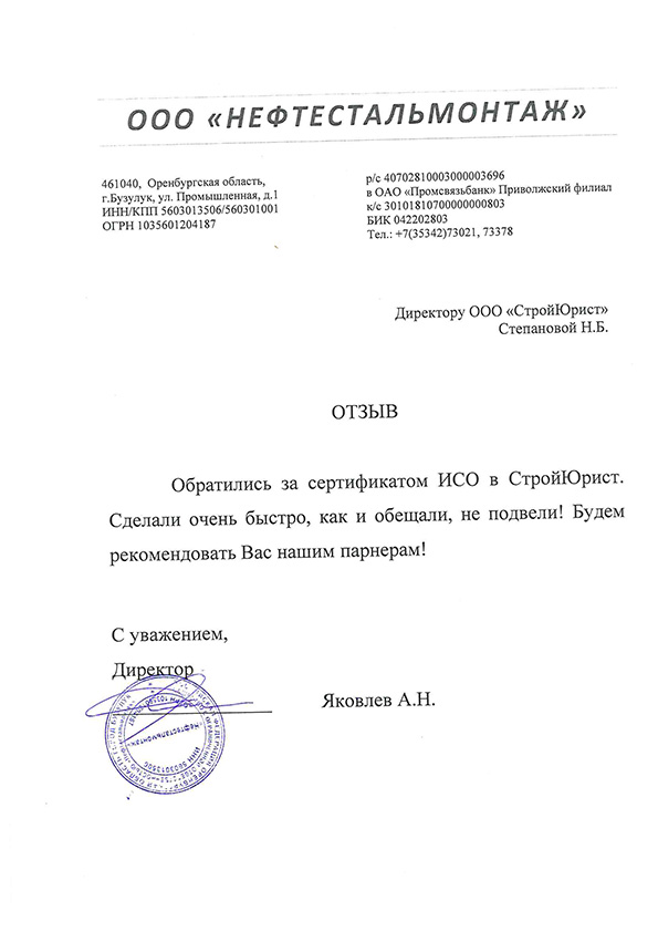 Отзывы клиентов "СтройЮрист" по ISO в Пятигорске