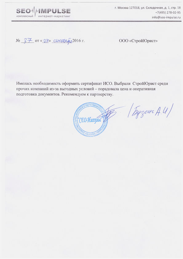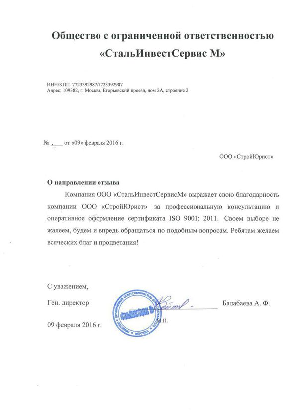 Отзывы клиентов "СтройЮрист" по ISO в Пятигорске