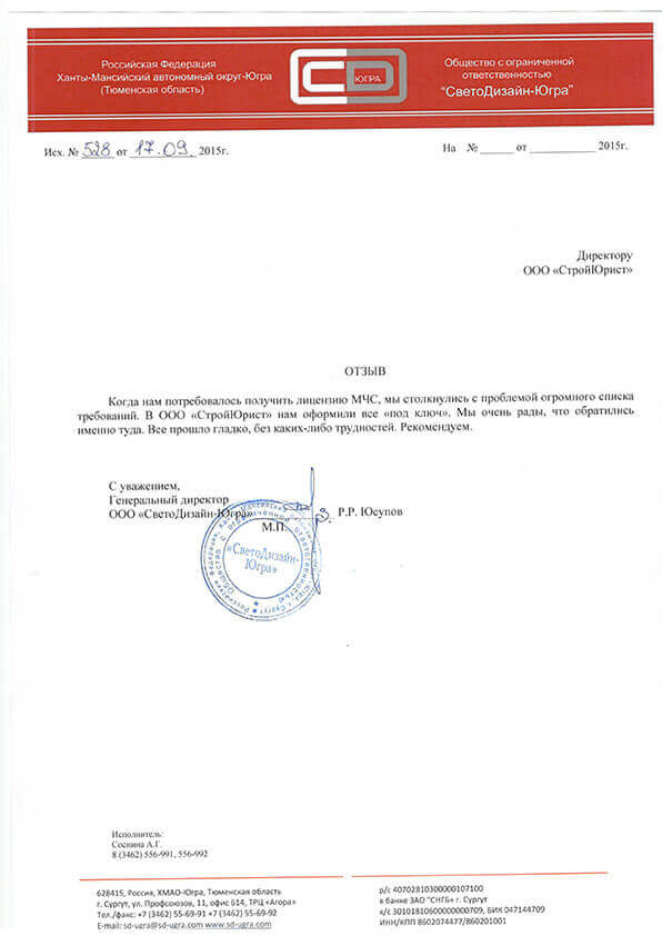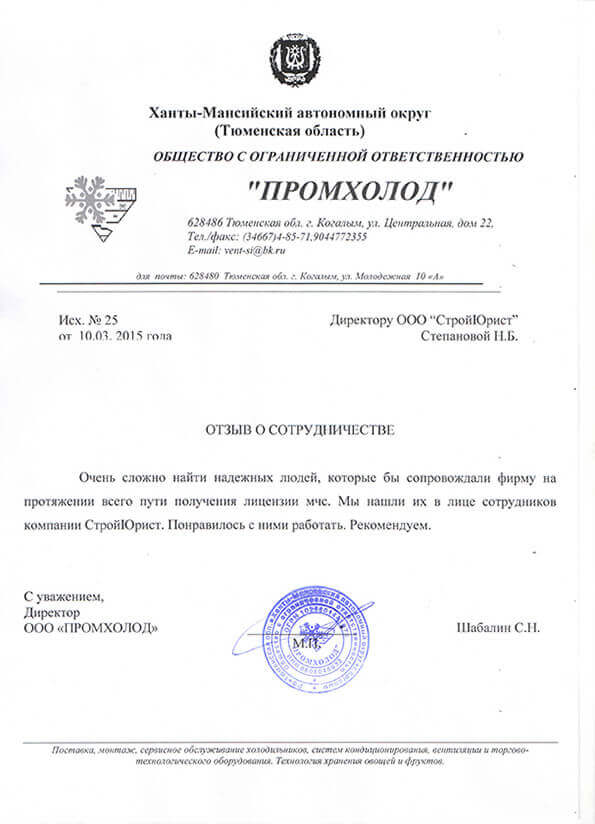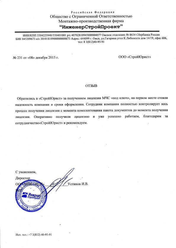 Отзывы клиентов "СтройЮрист" по лицензированию МЧС в Пятигорске