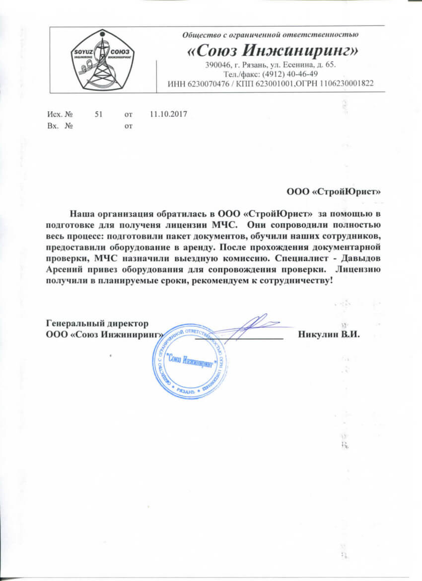 Отзывы клиентов "СтройЮрист" по лицензированию МЧС в Пятигорске