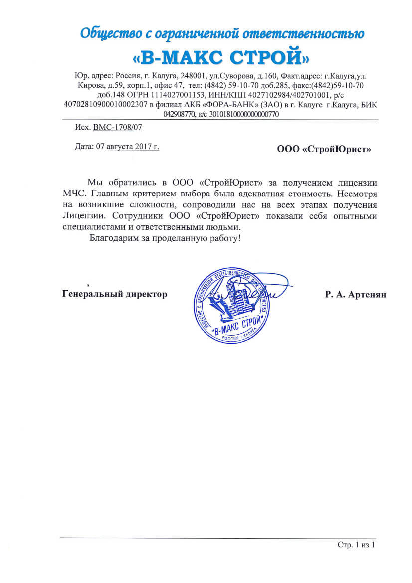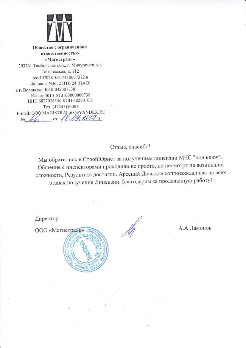 Отзывы клиентов "СтройЮрист" по лицензированию МЧС в Пятигорске