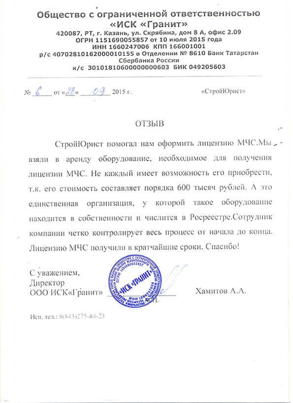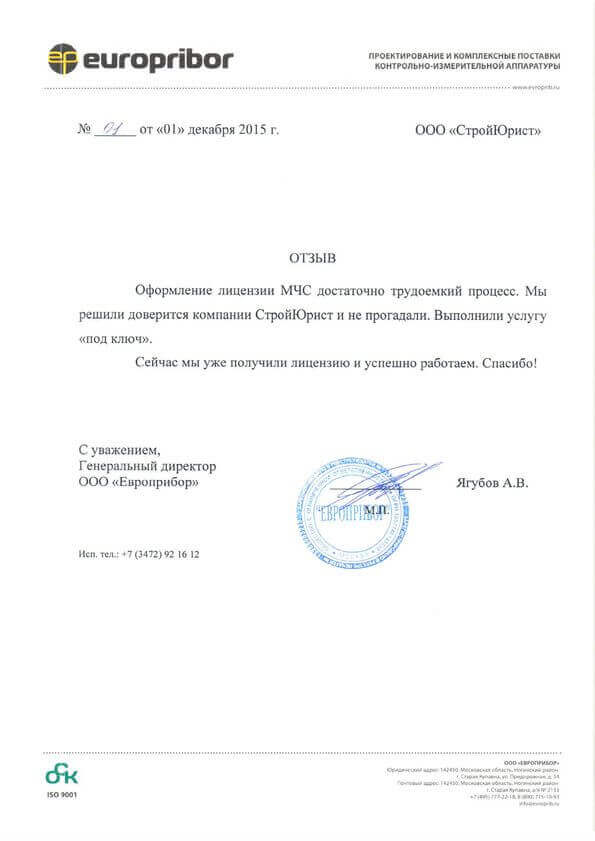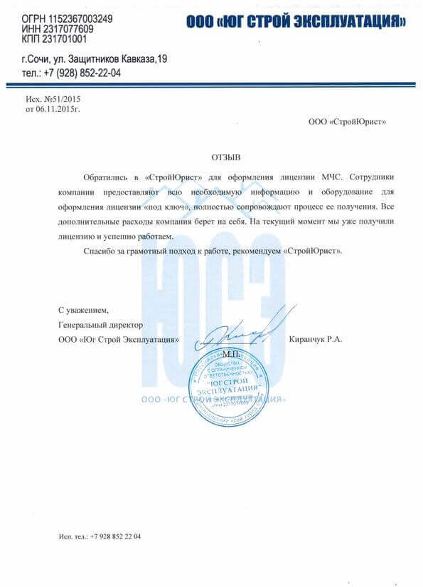 Отзывы клиентов "СтройЮрист" по лицензированию МЧС в Пятигорске