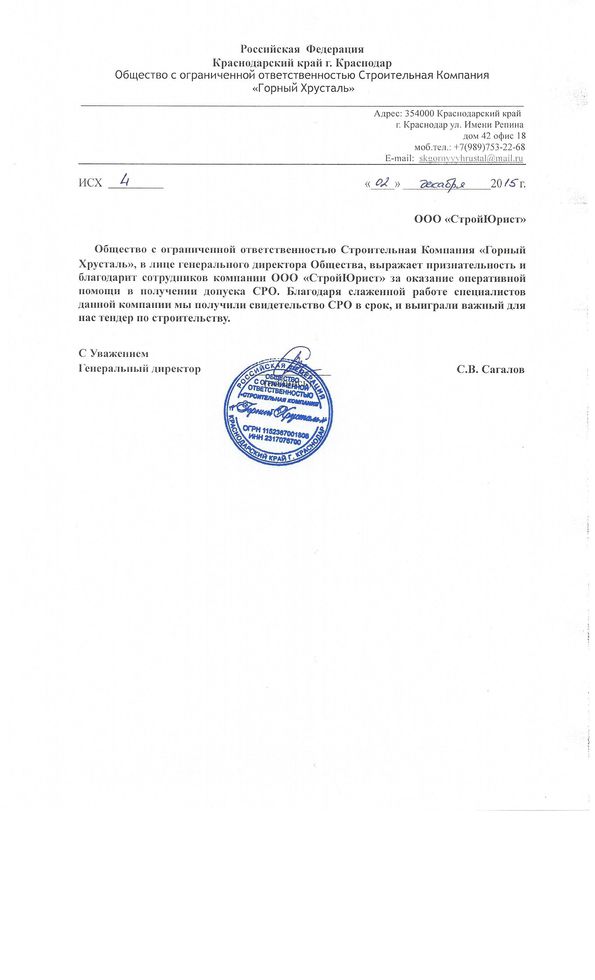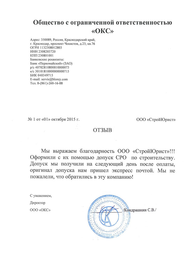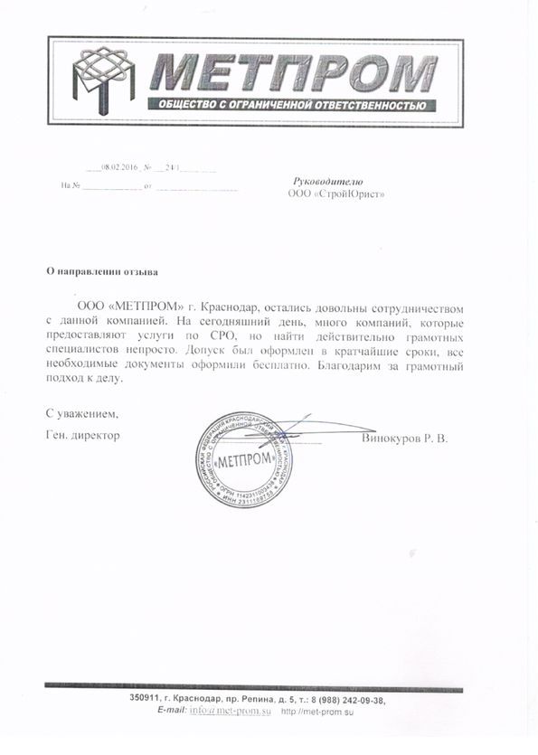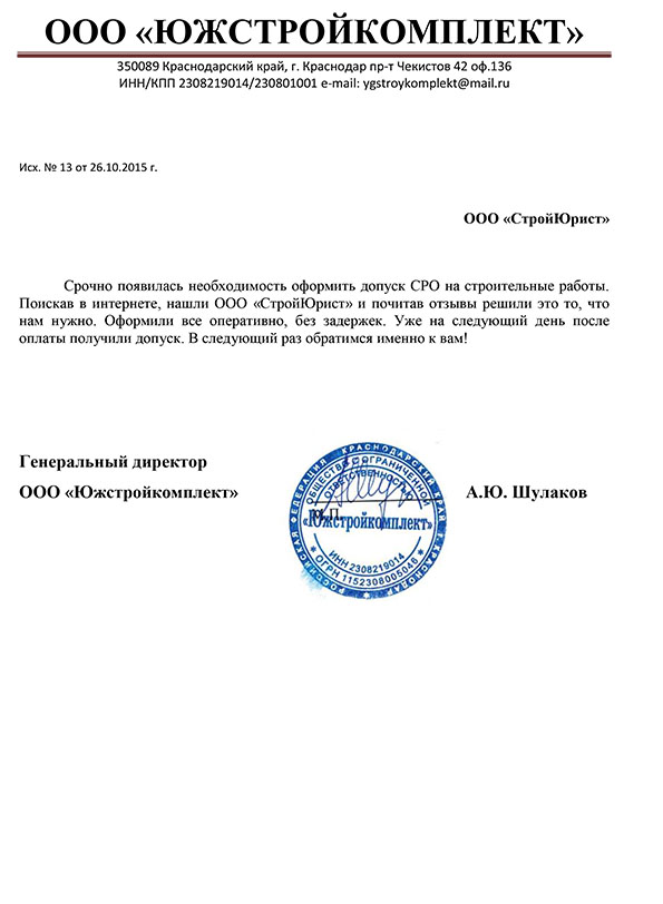 Отзывы клиентов "СтройЮрист" по вступлению в СРО в Пятигорске