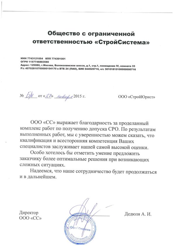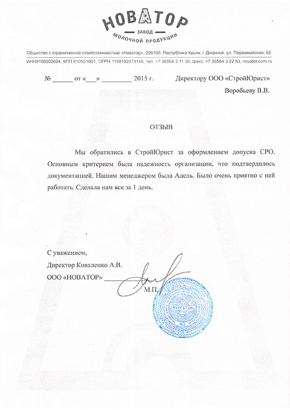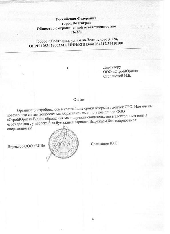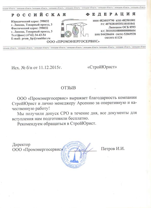 Отзывы клиентов "СтройЮрист" по вступлению в СРО в Пятигорске