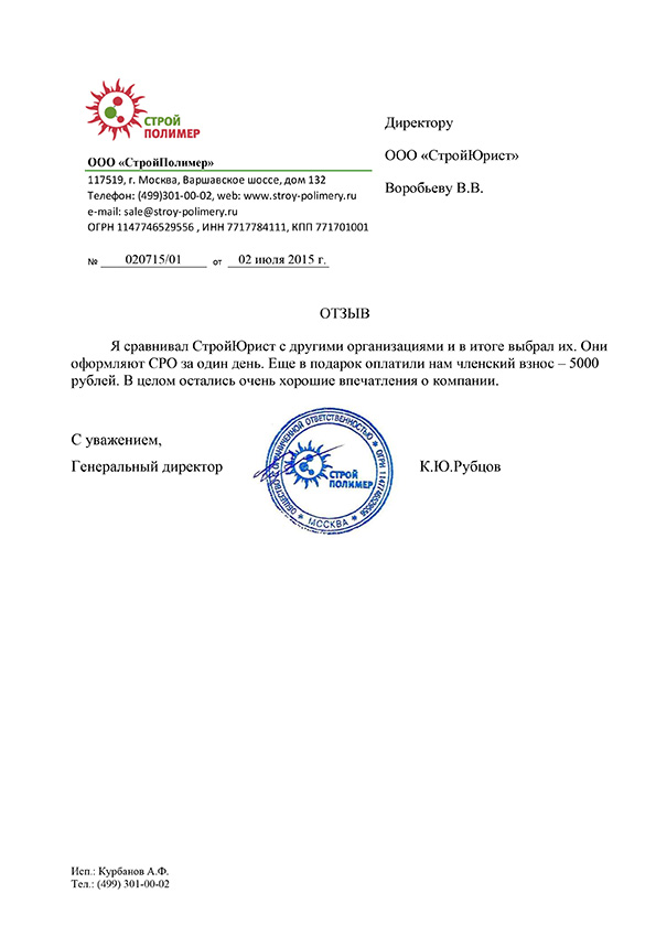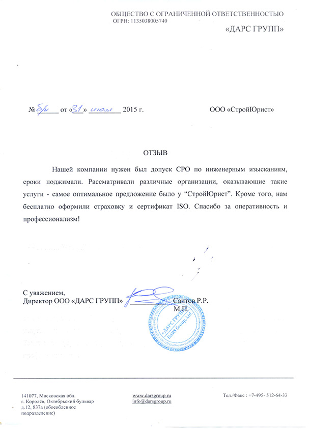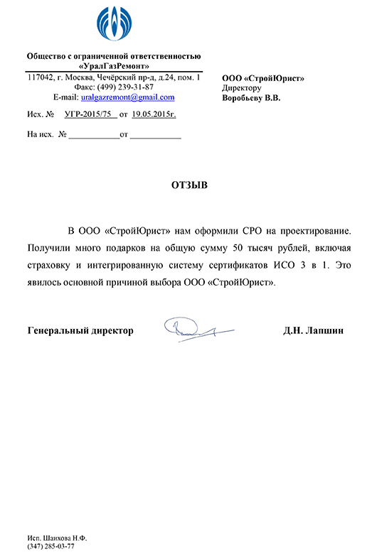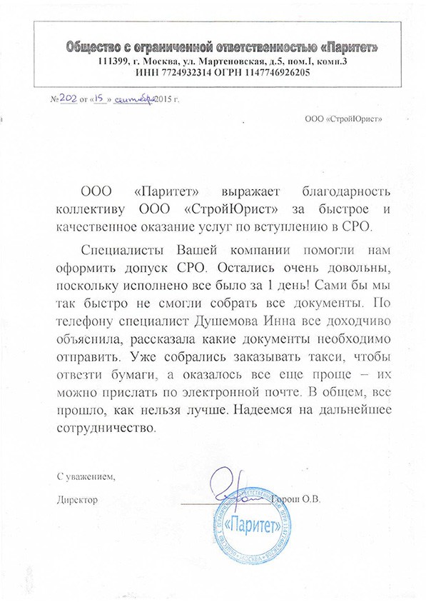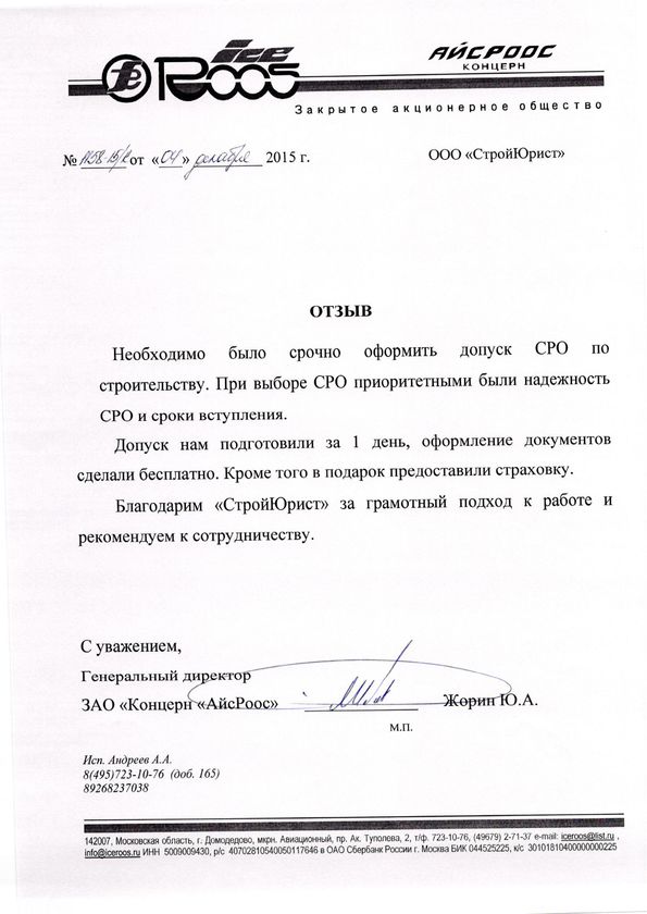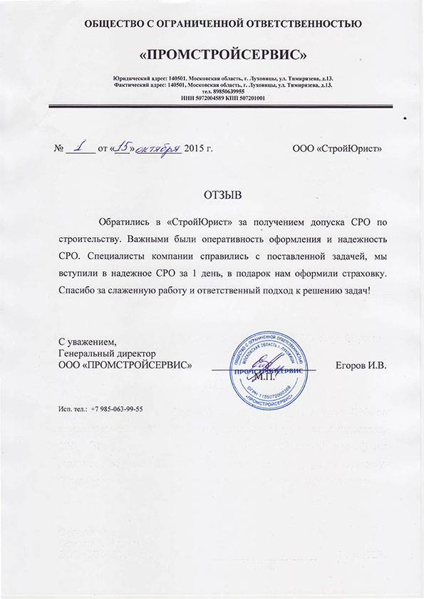 Отзывы клиентов "СтройЮрист" по вступлению в СРО в Пятигорске