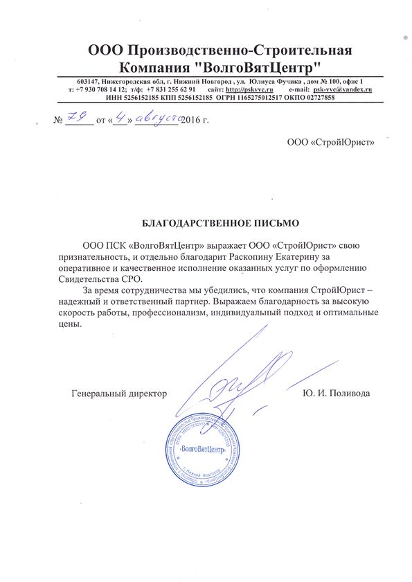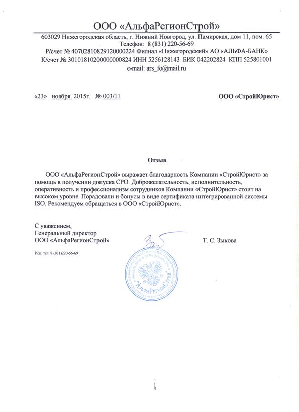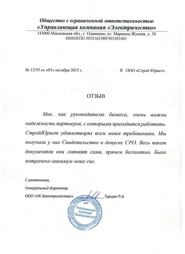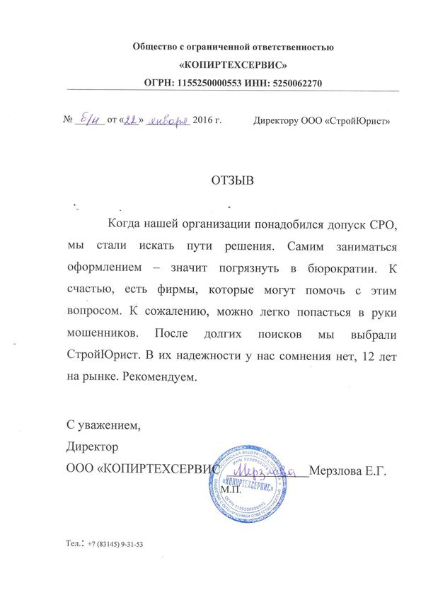 Отзывы клиентов "СтройЮрист" по вступлению в СРО в Пятигорске
