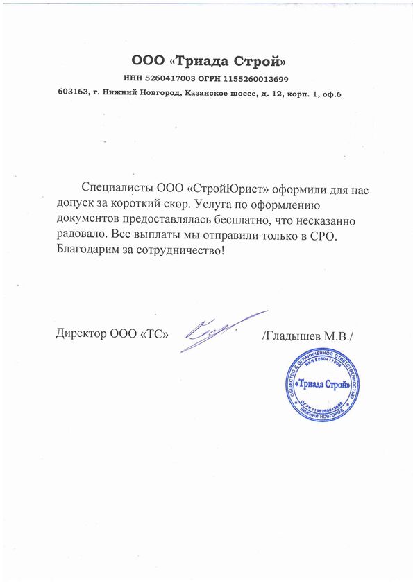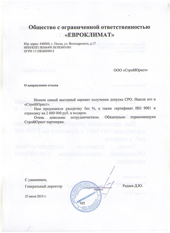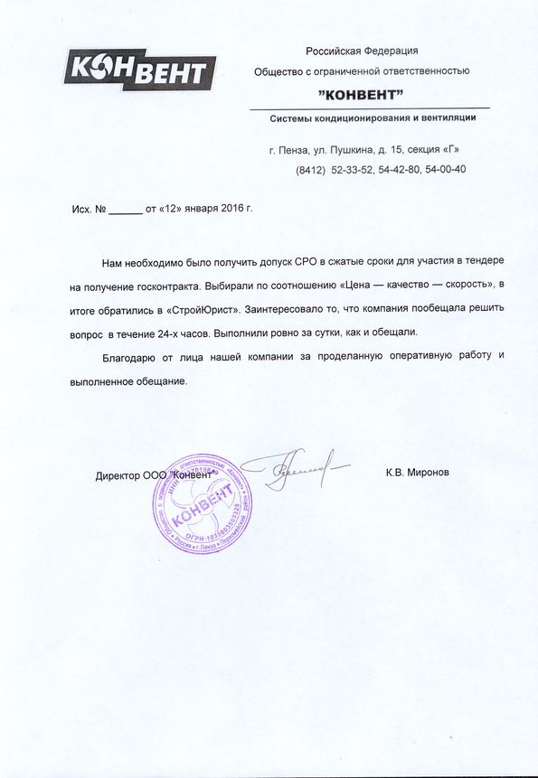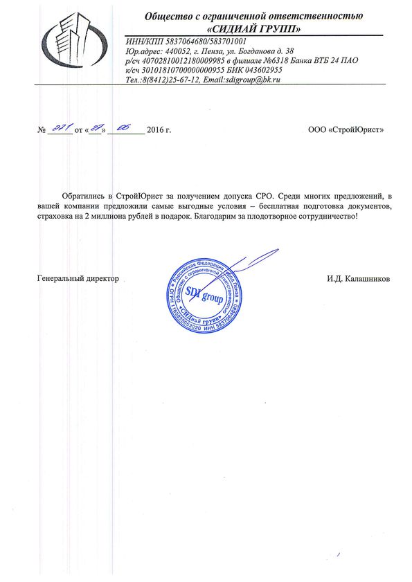 Отзывы клиентов "СтройЮрист" по вступлению в СРО в Пятигорске