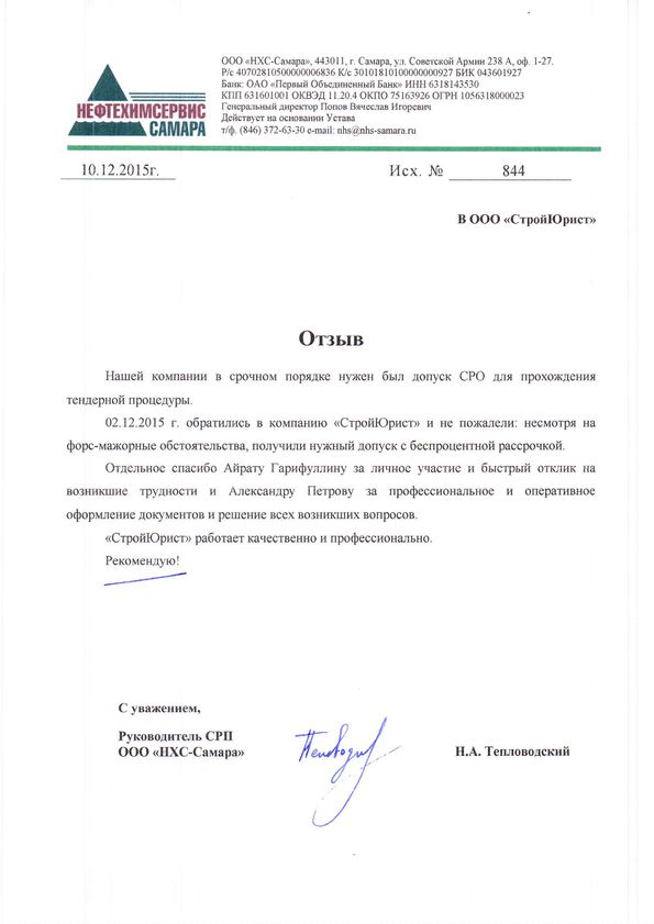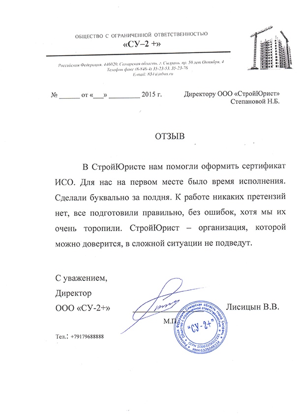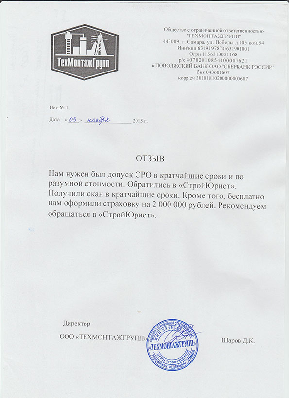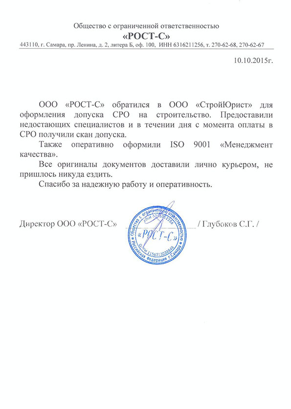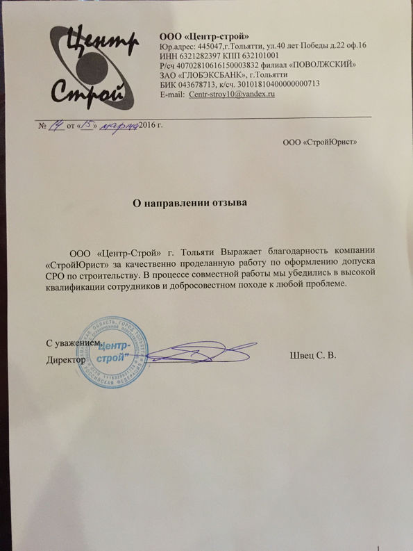 Отзывы клиентов "СтройЮрист" по вступлению в СРО в Пятигорске