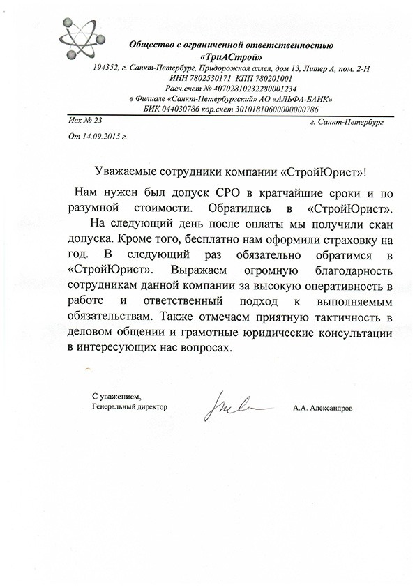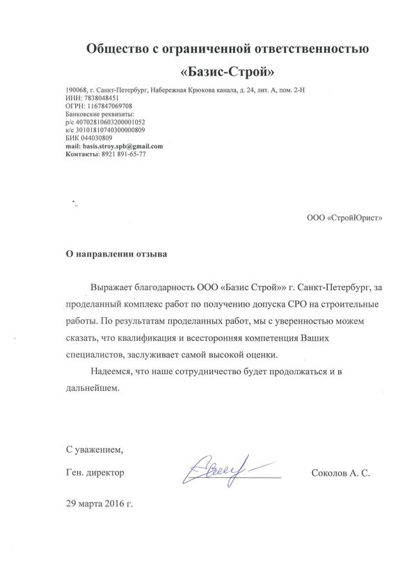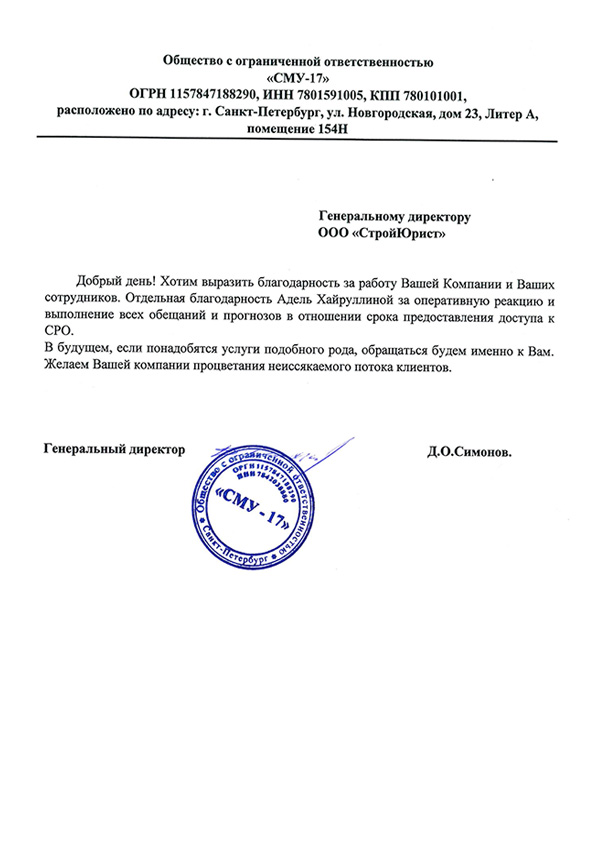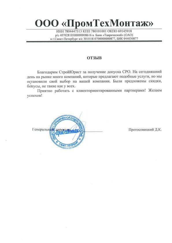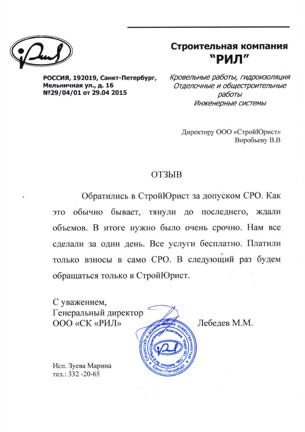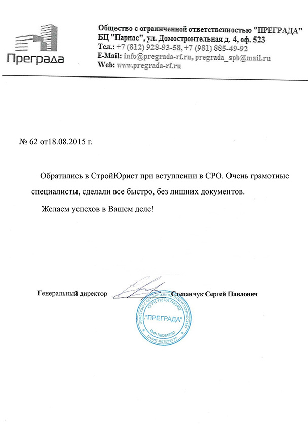 Отзывы клиентов "СтройЮрист" по вступлению в СРО в Пятигорске