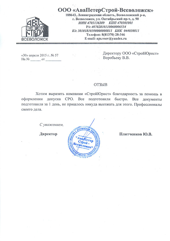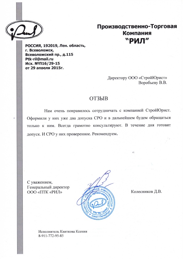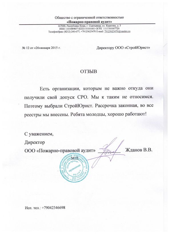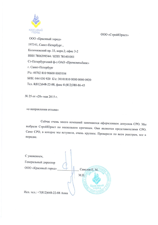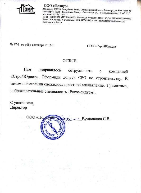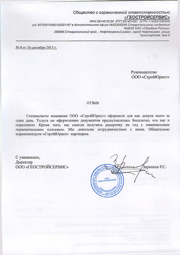Отзывы клиентов "СтройЮрист" по вступлению в СРО в Пятигорске