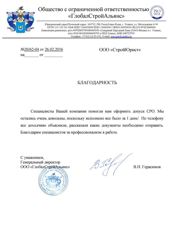 Отзывы клиентов "СтройЮрист" по вступлению в СРО в Пятигорске