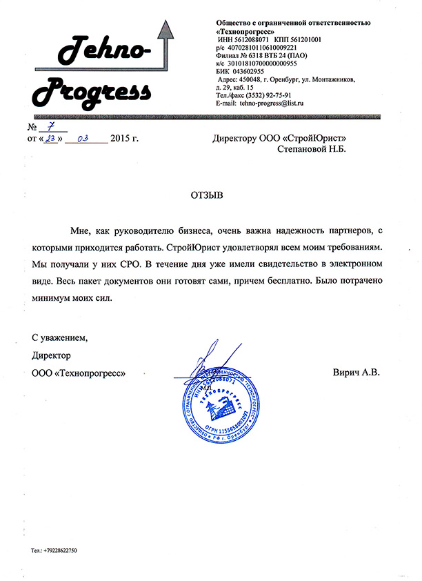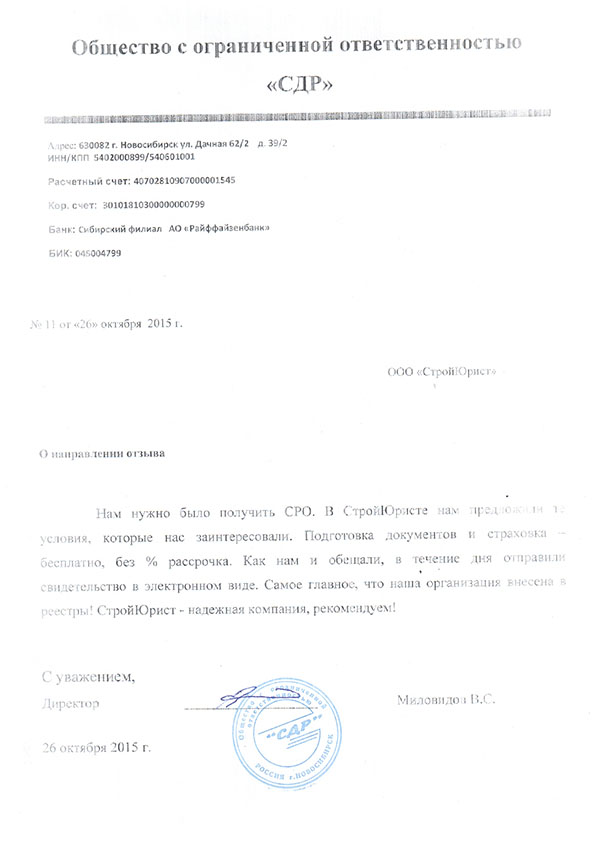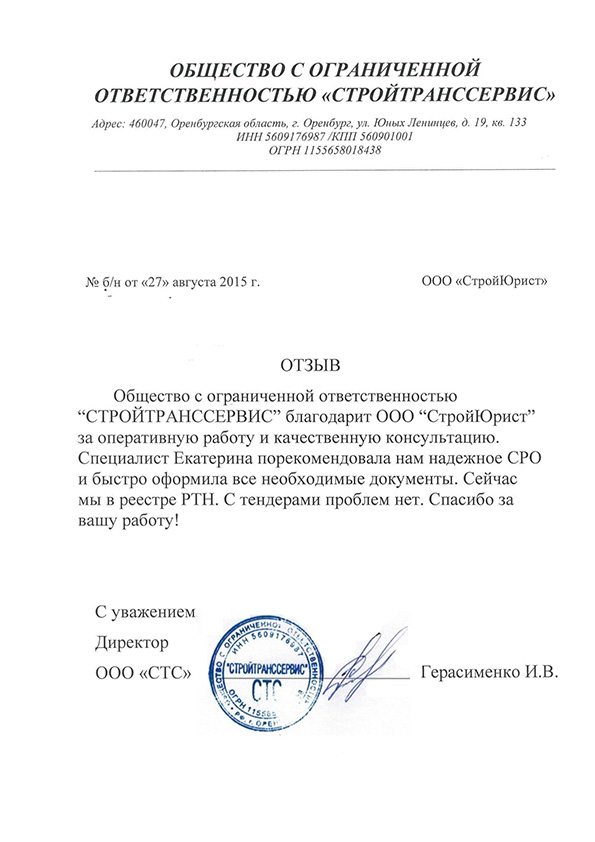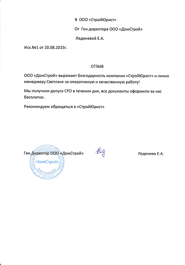 Отзывы клиентов "СтройЮрист" по вступлению в СРО в Пятигорске