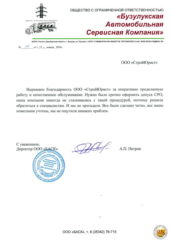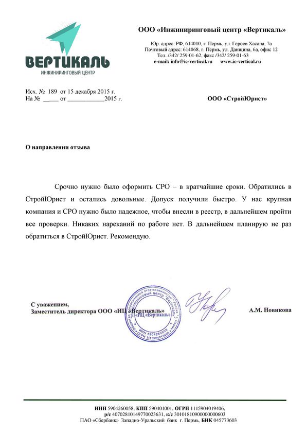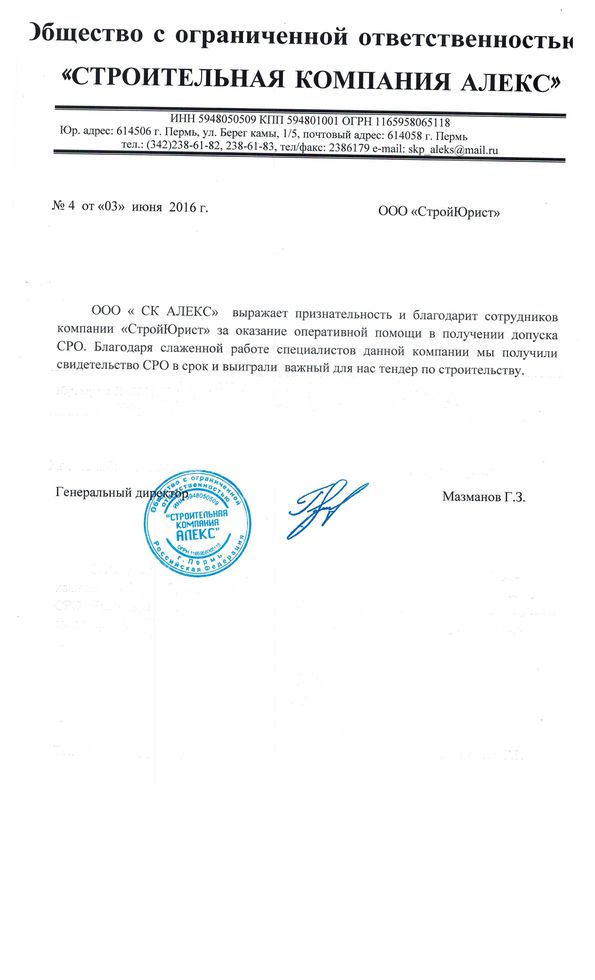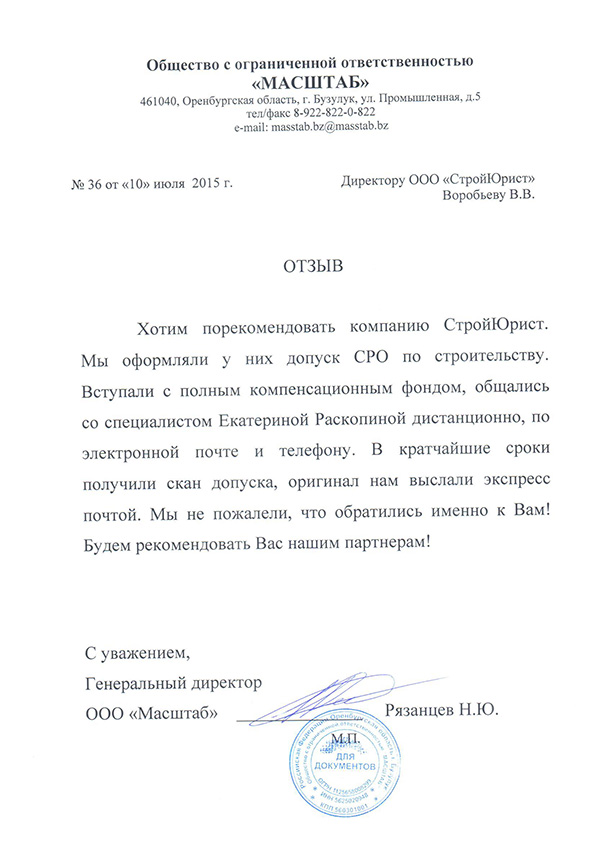 Отзывы клиентов "СтройЮрист" по вступлению в СРО в Пятигорске