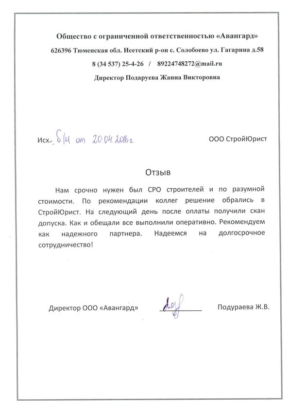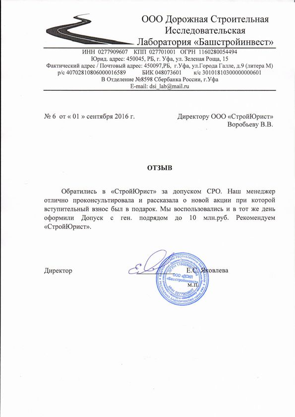 Отзывы клиентов "СтройЮрист" по вступлению в СРО в Пятигорске