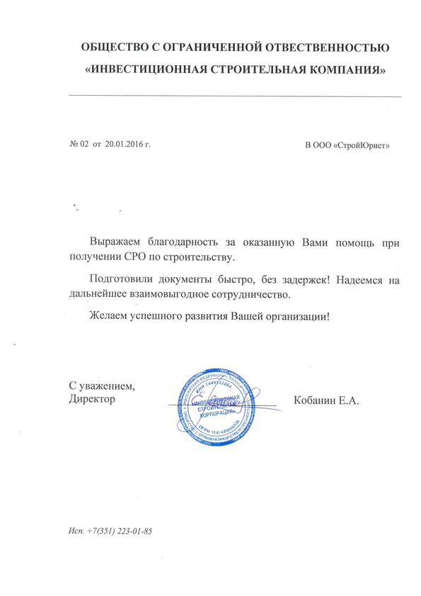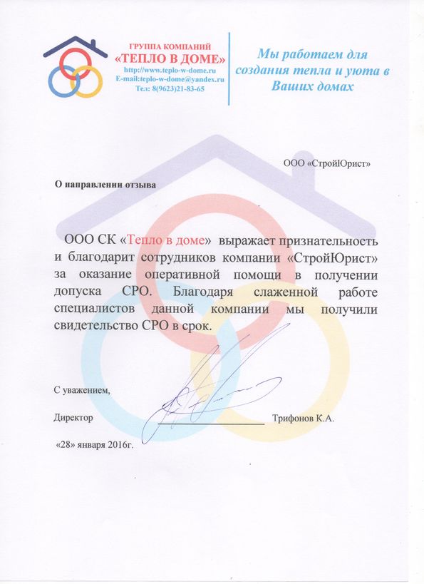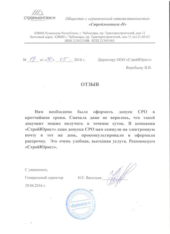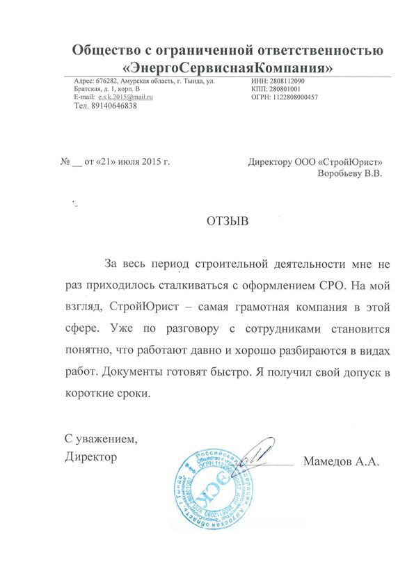 Отзывы клиентов "СтройЮрист" по вступлению в СРО в Пятигорске