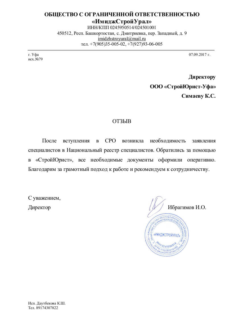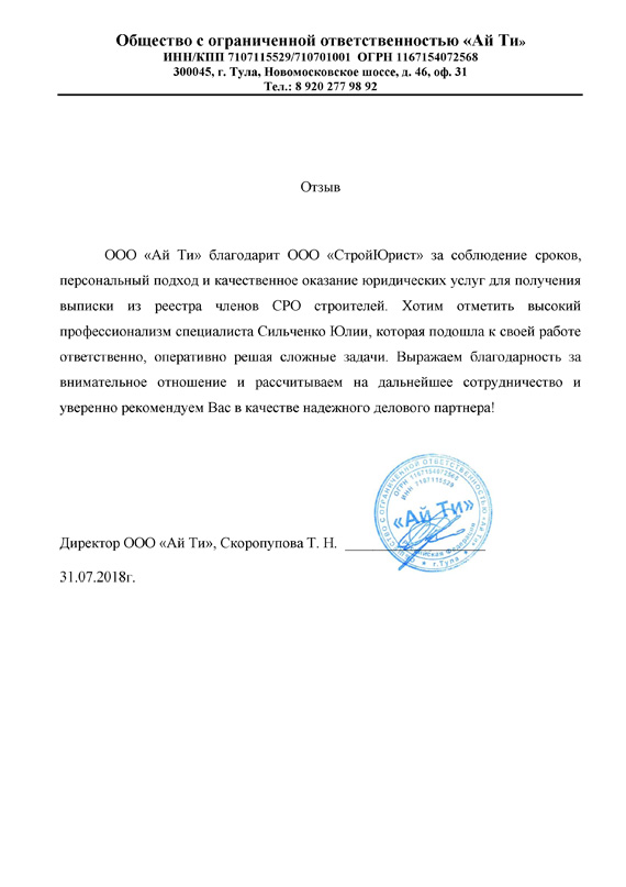 Отзывы клиентов "СтройЮрист" по вступлению в СРО в Пятигорске