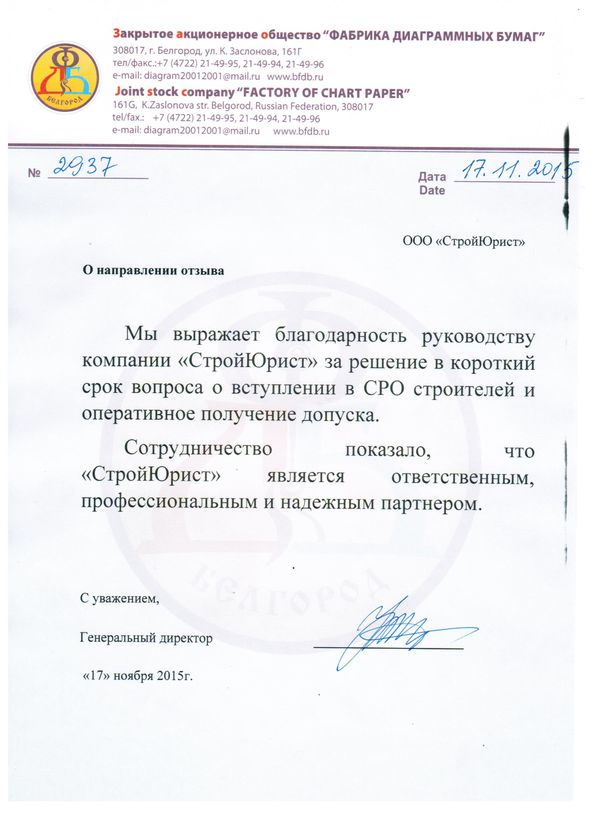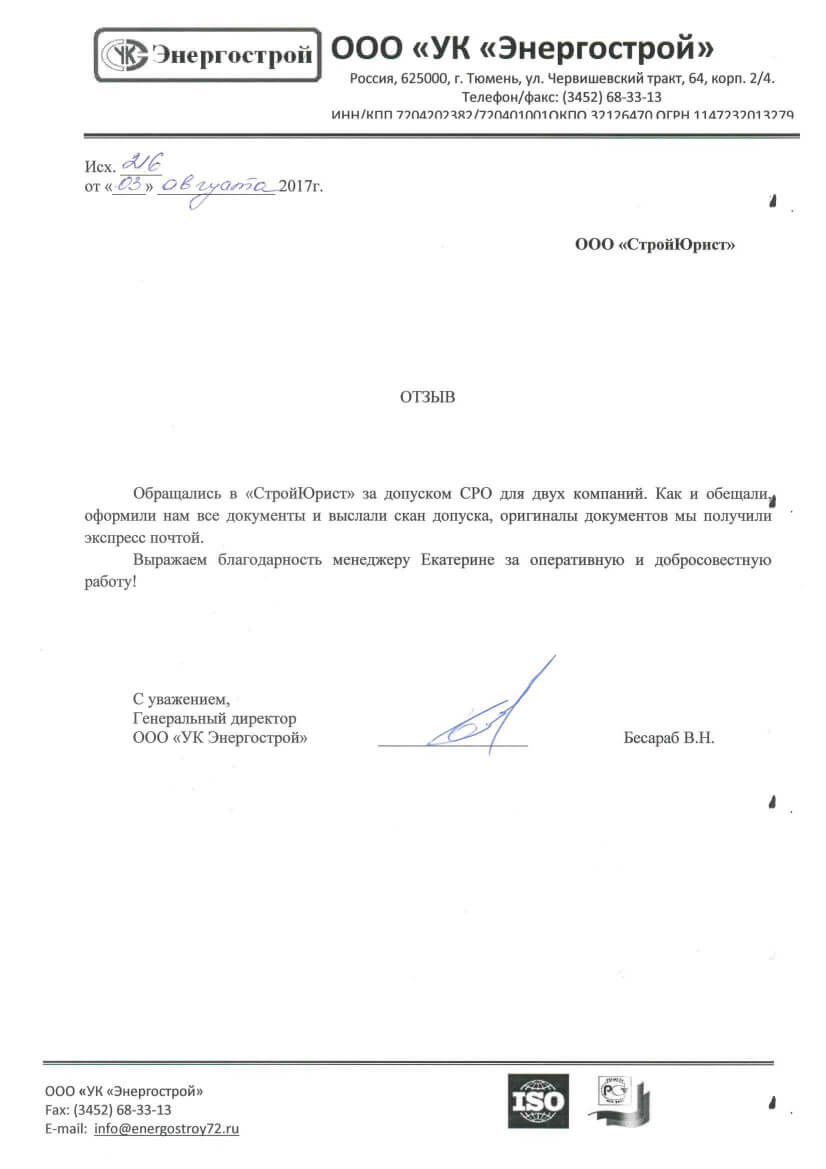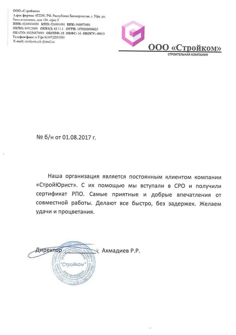 Отзывы клиентов "СтройЮрист" по вступлению в СРО в Пятигорске