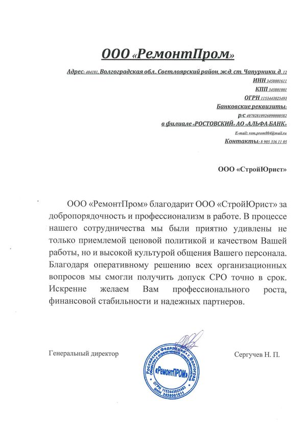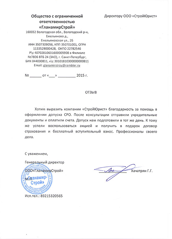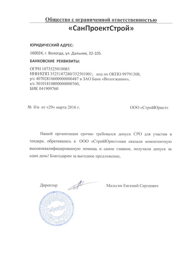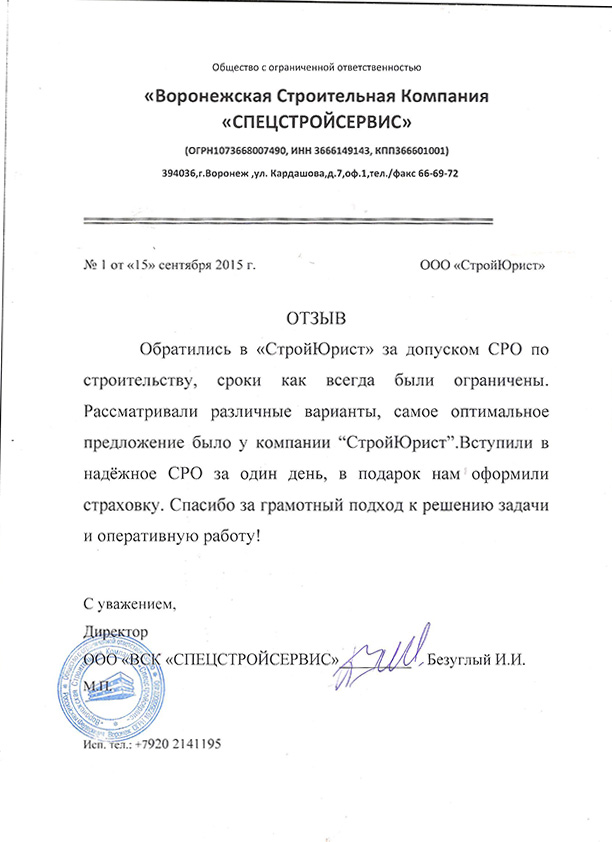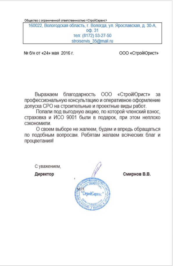 Отзывы клиентов "СтройЮрист" по вступлению в СРО в Пятигорске